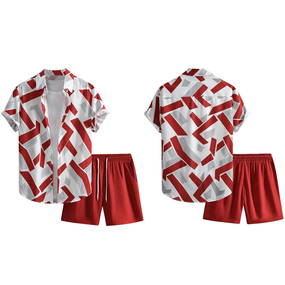 2 Piece Outfits Short Sleeve Button Down Shirt And Shorts Set Breathable Printed Summer Men’s Shirt Set BY AMAZING INDUSTRIES