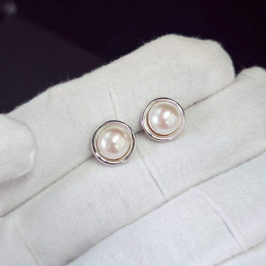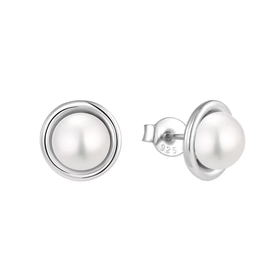 925 sterling silver pearl earrings, simple and hypoallergenic daily accessories, round white pearl earrings for women