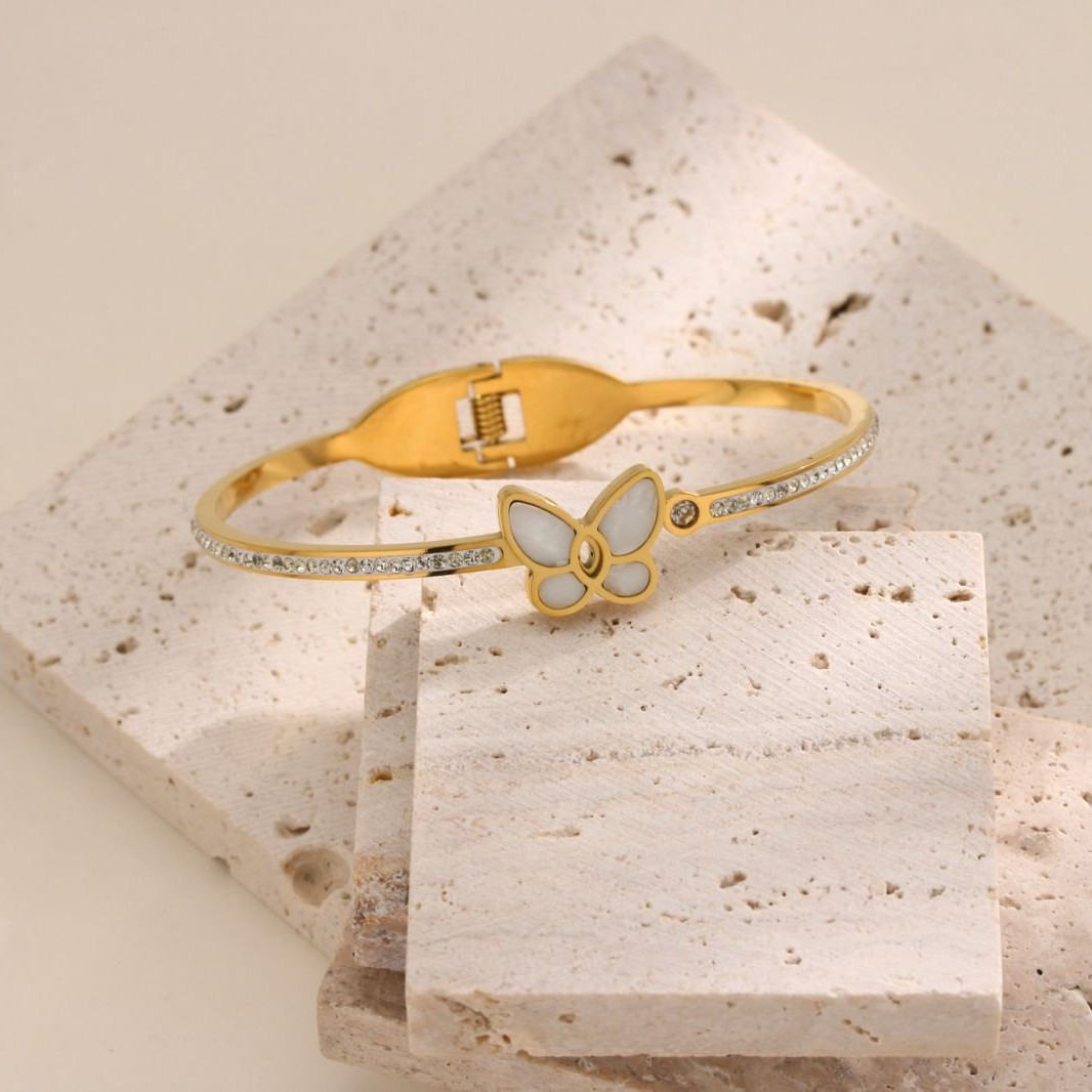 Minimally hollowed out heart-shaped mother of titanium steel bracelet, fashionable and versatile, vacuum plated 18k non fading bracelet