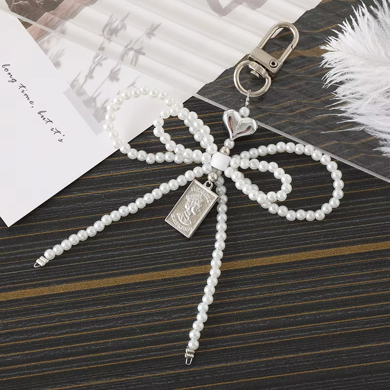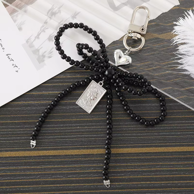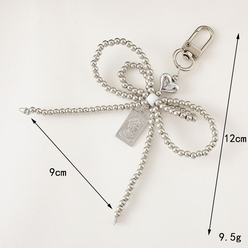 1 review for Creative Fresh Plating Beaded Key Chain Bow Love Key Chain Bag Small Pendant Anti-lost Phone Chain