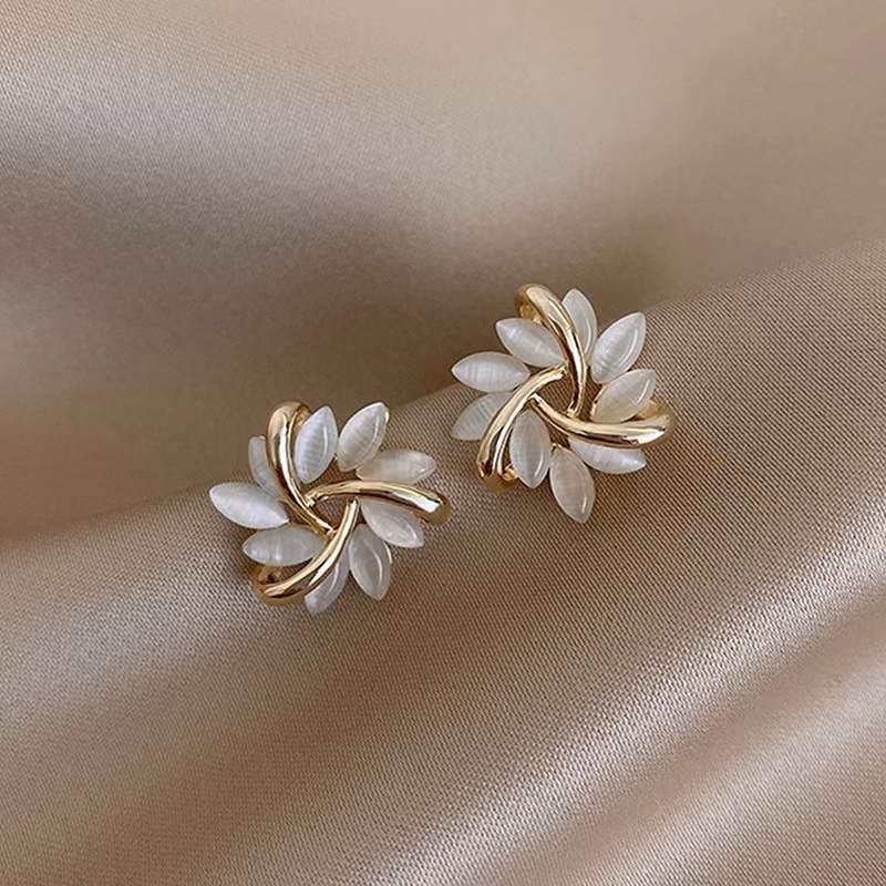 S925 silver needle cat eye stone French style petal earrings for women, Korean version, simple temperament, niche design, high-end feeling earrings