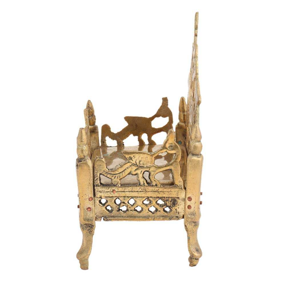 Handmade golden brass carving, Krishna Sinhasan bed, Pooja decorative sculpture, statue, declaration, decorative gift