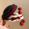 French woolen top hat, ladies’ Hepburn autumn and winter bow, red cherry Christmas hat, hair clip and headwear
