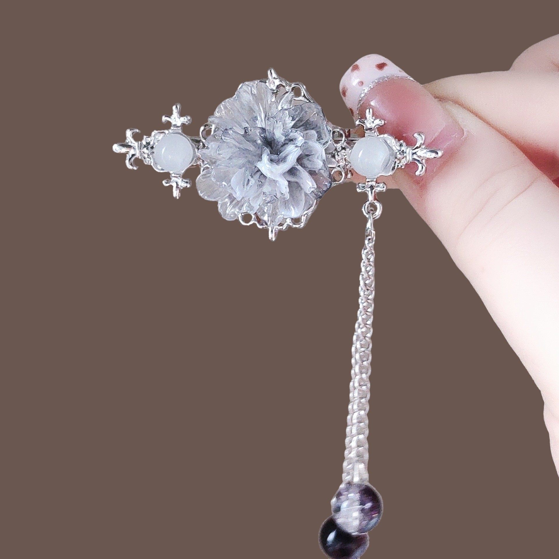 Chinese Feng Shui Ink Flower tassel Hairpin for Women with a Cool and Personalized Design, Exquisite Side Clips, Fragmented Hairpins, and Hairpiece Clips