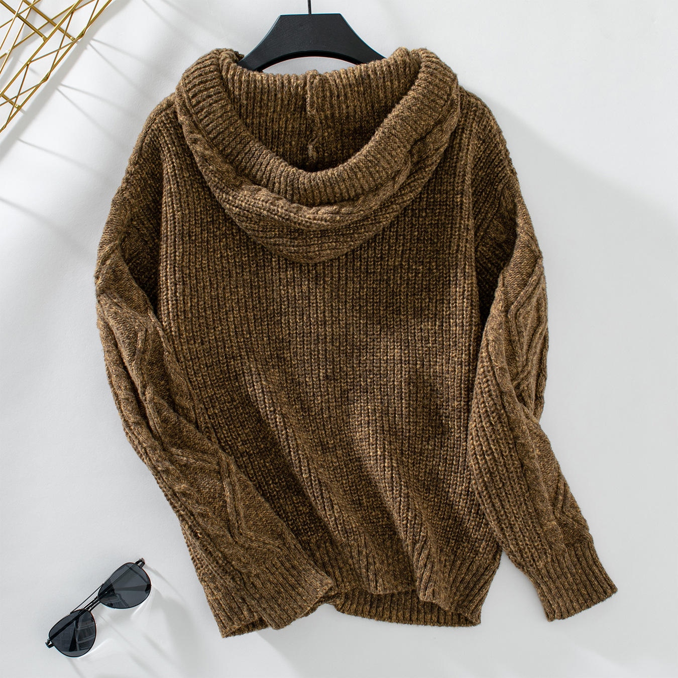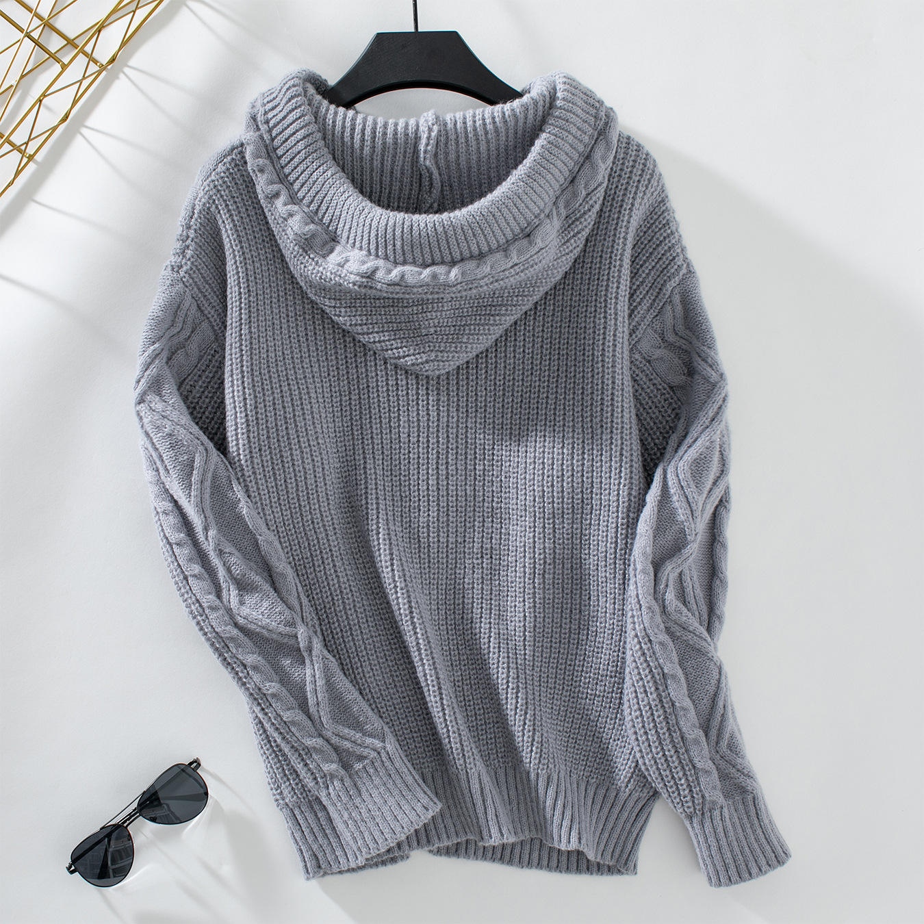 1 review for Hooded Drawstring Knit Cardigan Autumn and Winter New Twist Sweater Women’s Solid Color Medium Long Coat
