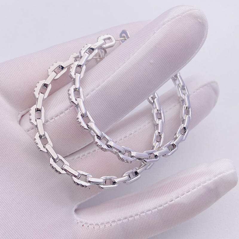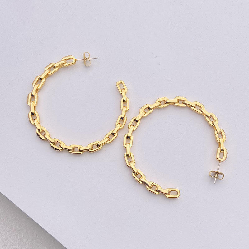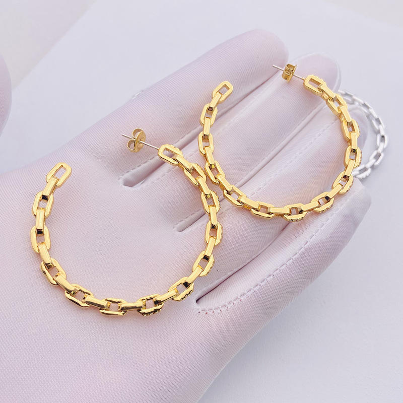 Korean Dongdaemun trendy simple gold-plated earrings with large circles, zircon chains, geometric shapes for women from Europe and America