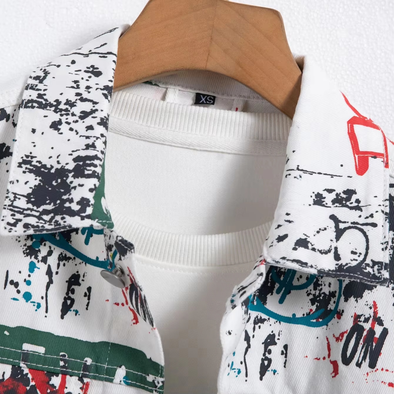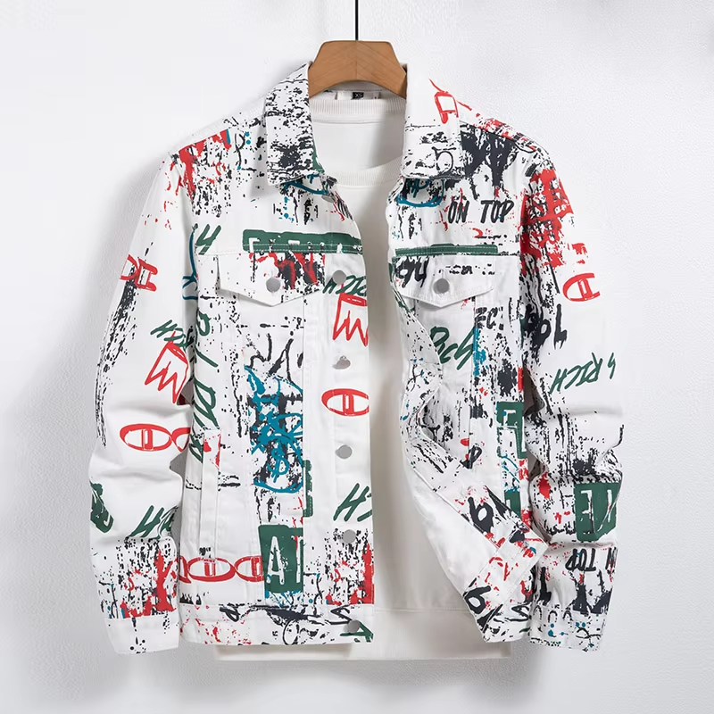 Men’S Denim Jacket Multi-Color Mash-Up High-Quality Fabric Men’S Casual Denim Jacket