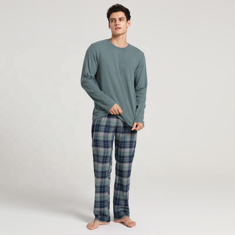 New 100% Cotton High-Quality Men's Pajama Set With Long Sleeves and Long Pants Sleepwear Lounge WearNew 100% Cotton High-Quality Men’s Pajama Set With Long Sleeves and Long Pants Sleepwear Lounge Wear