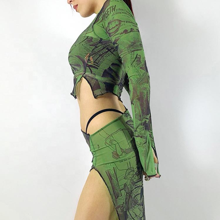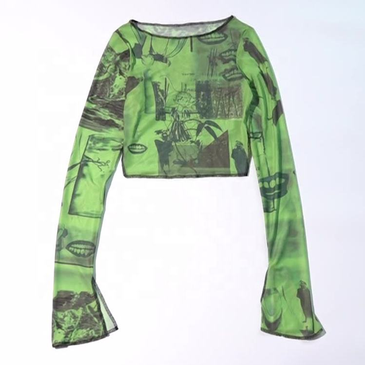 New Arrival Latest Design Custom Wholesale Bulk Fashion Work Out Lady Long Sleeve Mesh Crop Tops for Women