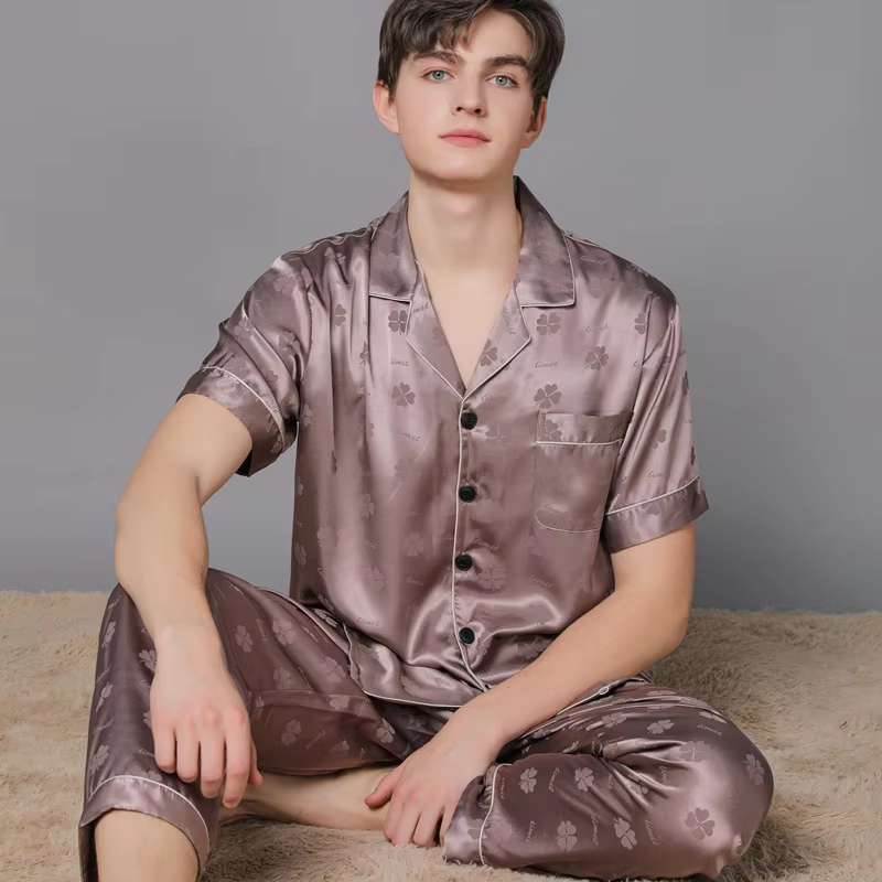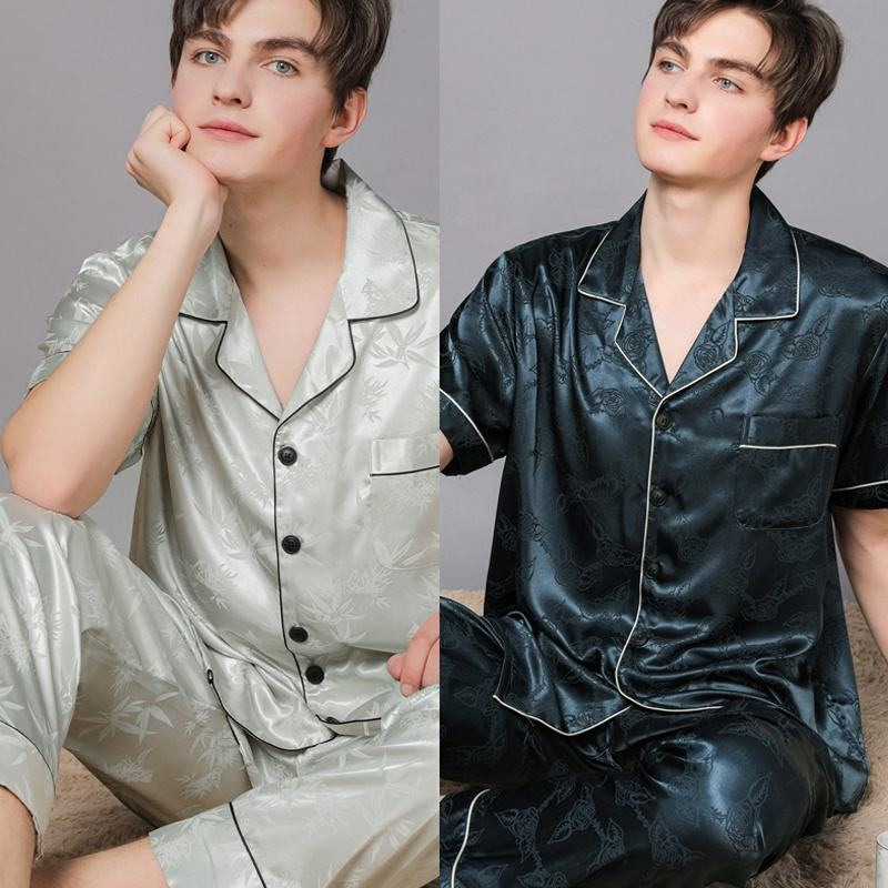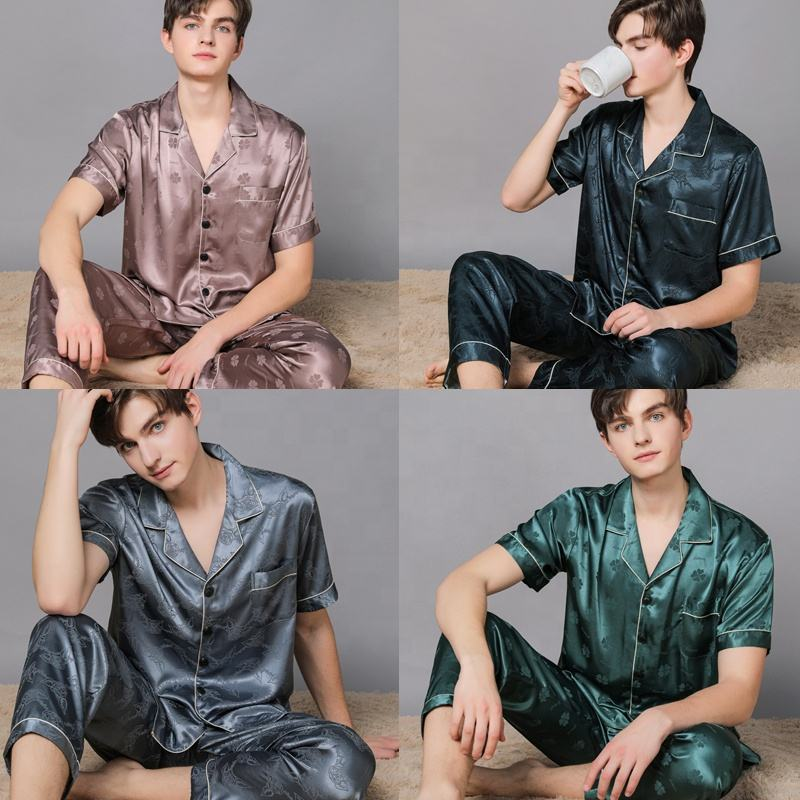 New Custom Button-down Pajamas Home Wear 2 Men’s Silk Satin Pajamas Lounge Wear Mens Sleepwear