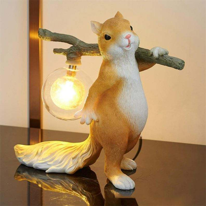 Nordic Modern LED Bedhead Desk Lamp Squirrel Cartoon Creative Resin Body Battery for Children’s Bedroom Living Room E14