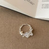 Irregular white crystal broken silver ring for women, simple design, personalized and versatile, fashionable and trendy commuting ring, ring