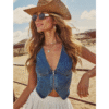 1 review for Sexy Deep V-neck Vests Women Solid Versatile Backless Zipper Crop Slim Tops Female Summer Vintage Street Lady Outwear