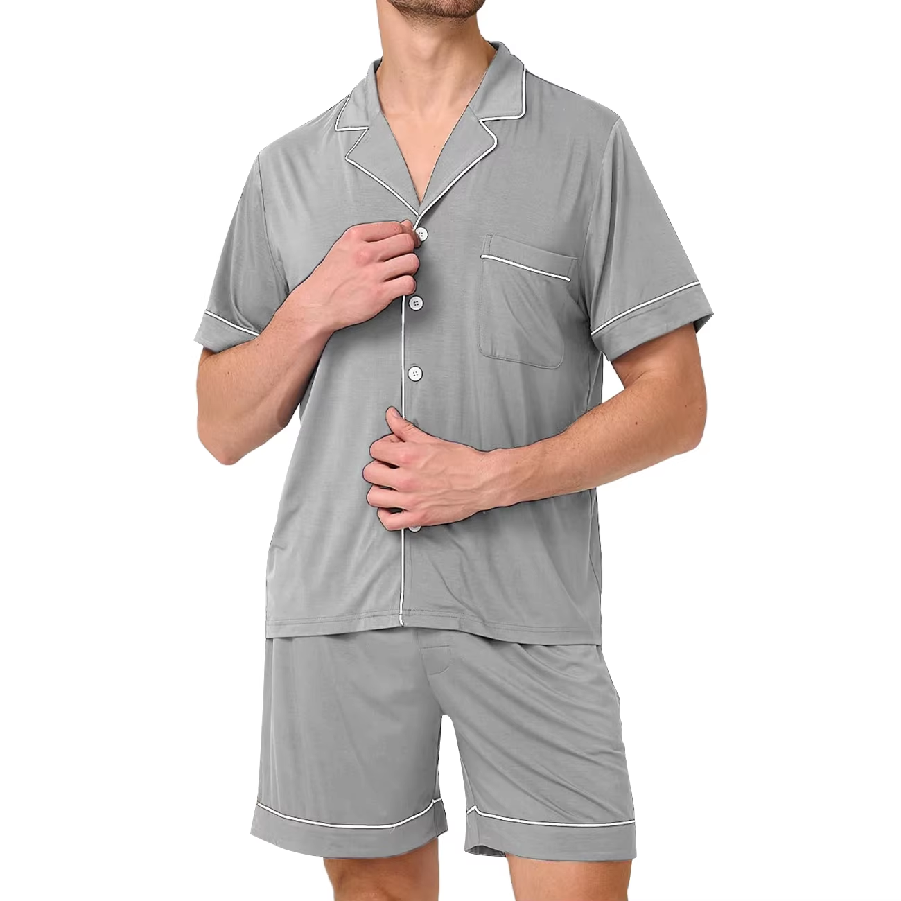 Summer Men’s Pajamas Bamboo Comfy Lounge Wear Set Adult Pyjamas Loungewear Soft Pj Shorts Set Wholesale