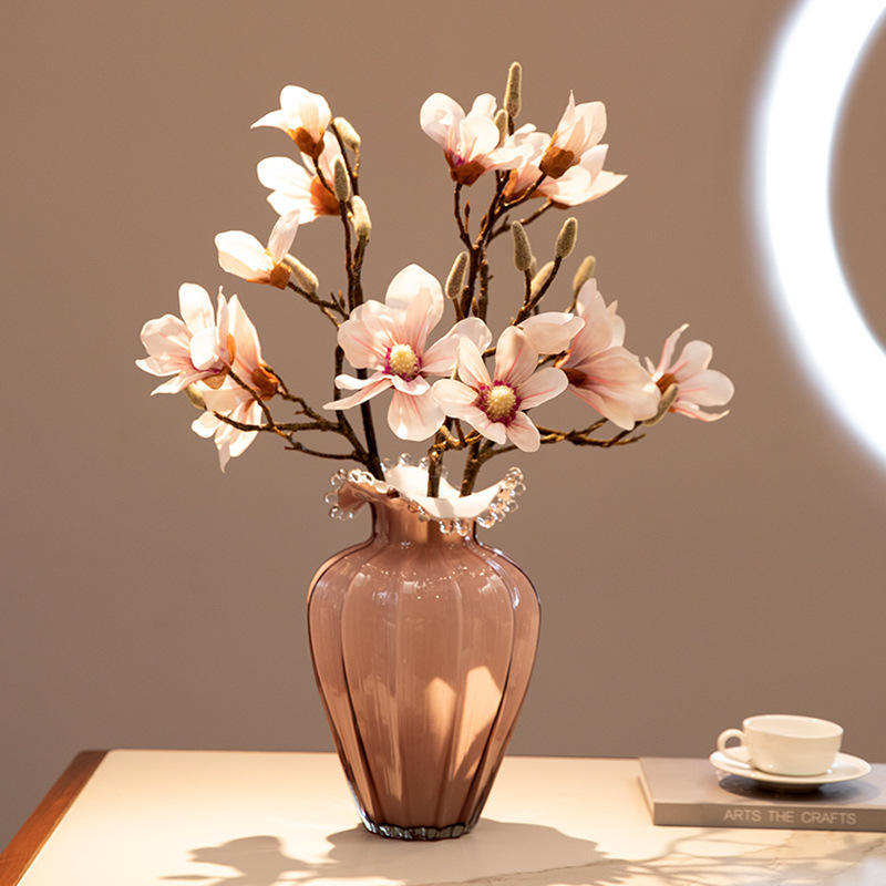 Waterdrop Wave Bottle Mouth Grape Pink Striped Glass Vase and Hotel DecorationWaterdrop Wave Bottle Mouth Grape Pink Striped Glass Vase and Hotel Decoration