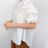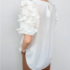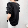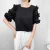 Women’s Crew Neck Blouses Elegant Layered Ruffle Sleeve T-Shirt Casual Style Top Blouse