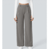 Women’s high waisted fashionable solid color woven cotton wide leg pants with two side pockets loose sweater pants