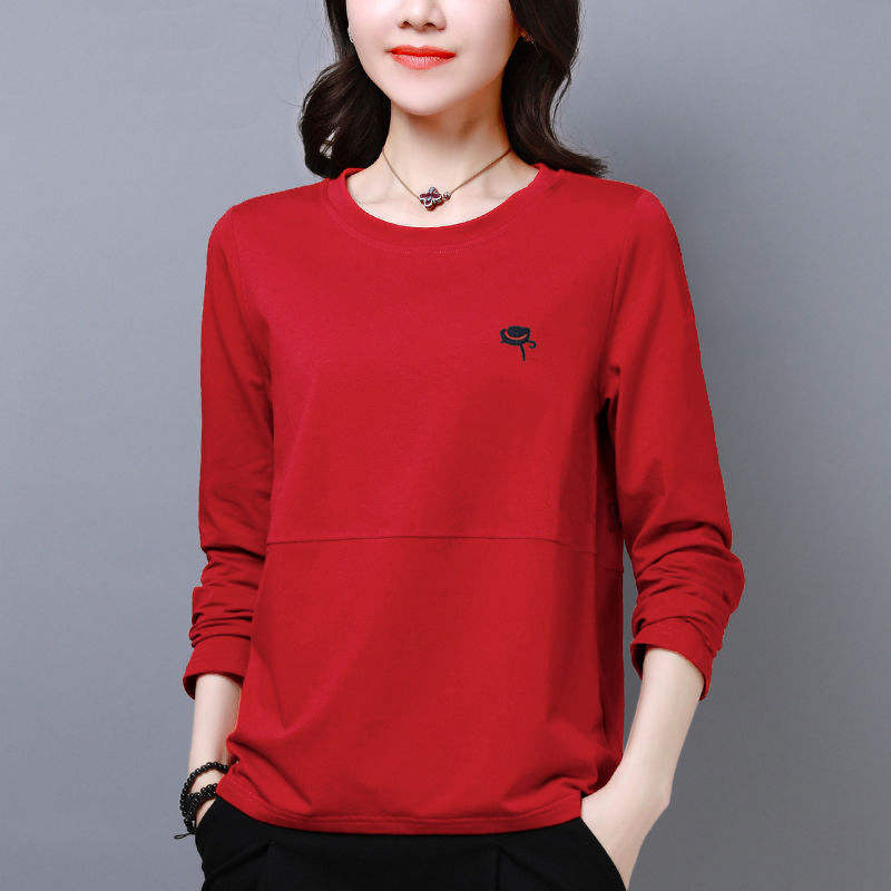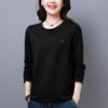 Women’s T-shirt long sleeved spring and autumn solid color base shirt loose pullover top embroidered women’s fashionable streetwear